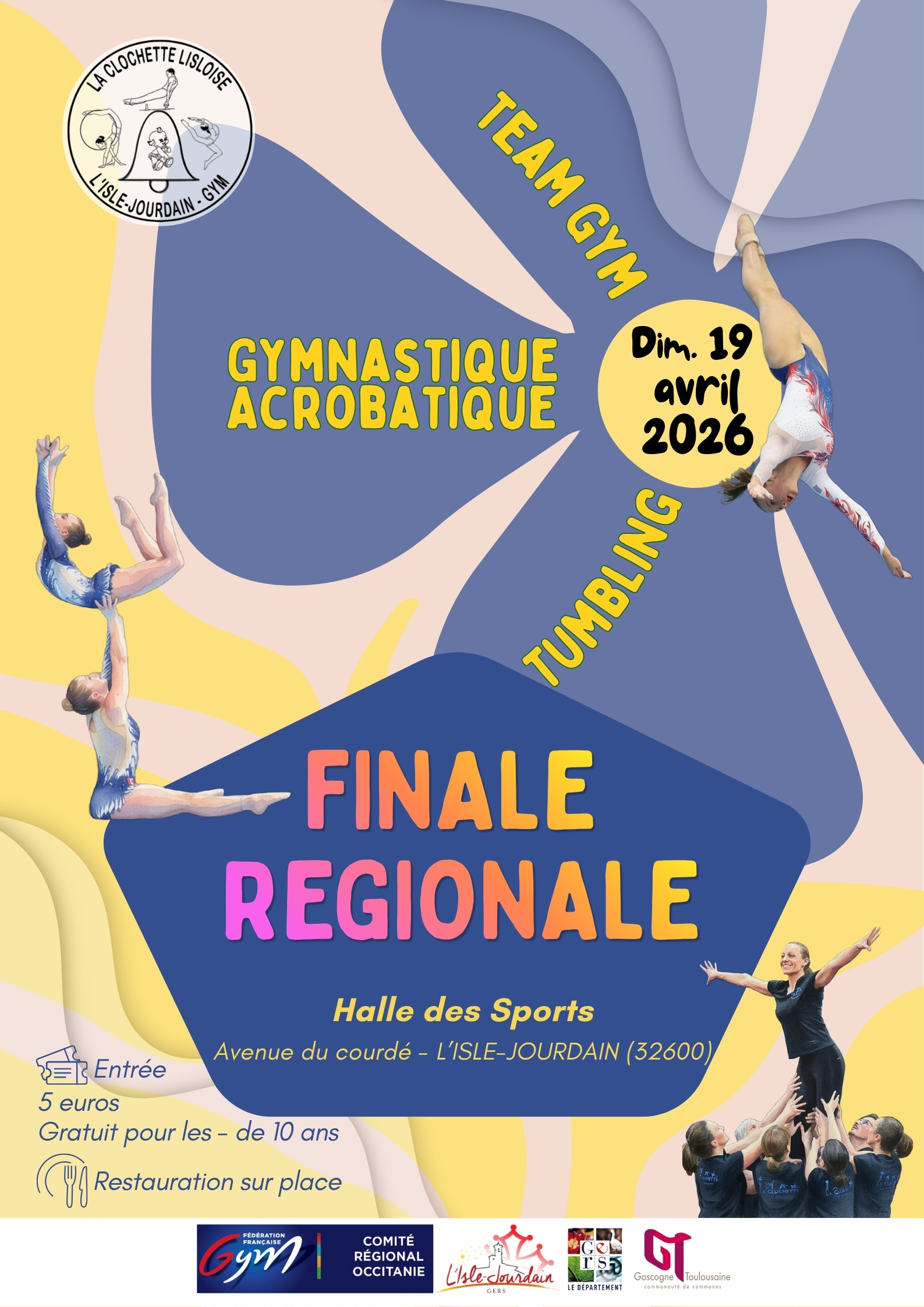 Le dimanche 19 avril 2026 la club organise les finales régionales de Gym Acrobatique, Tumbling et Team Gym.